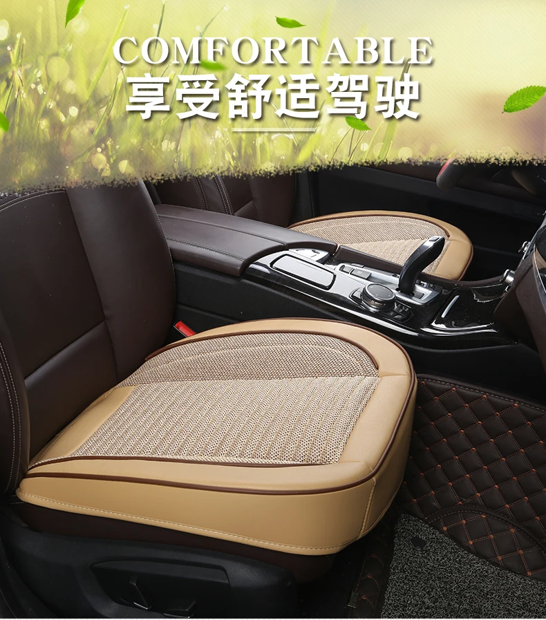 3D Driver Seat Cushion Car Chair Pad Flax Leather Front Car Seat Cover Auto Seat Protector Breathable Interior Accessories