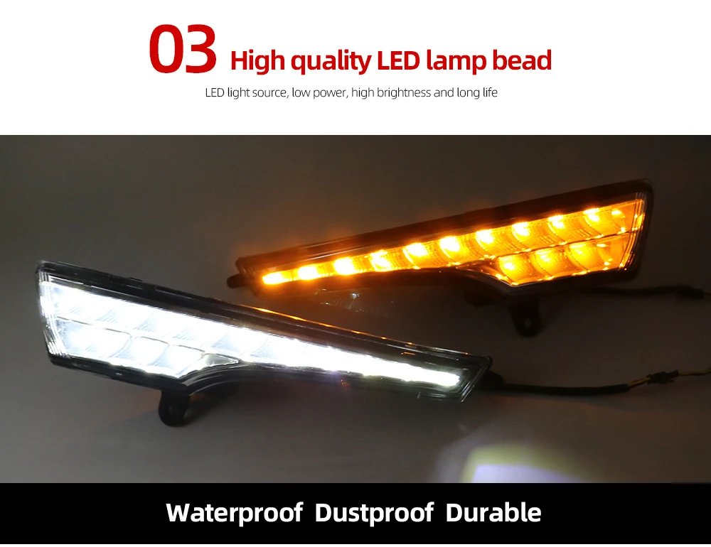 When you are driving straight, it lights up white. When you turn it flashing yellow light.When you